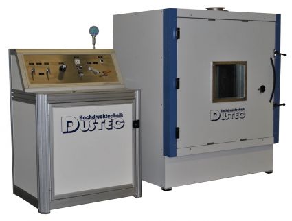 Unsere Prüfwannen / Prüfboxen haben immer eine Sicherheitsverriegelung und meist Sichtfenster. Spezielle Prüfboxen ermöglichen Schlauchtests bei Umgebungstemperaturen von -50°C bis +350°C. Über ein Temperiermodul zwischen Druckerzeuger und Prüfling kann die Temperatur des Prüfmediums ebenfalls von -50°C bis +350°C angepasst werden.